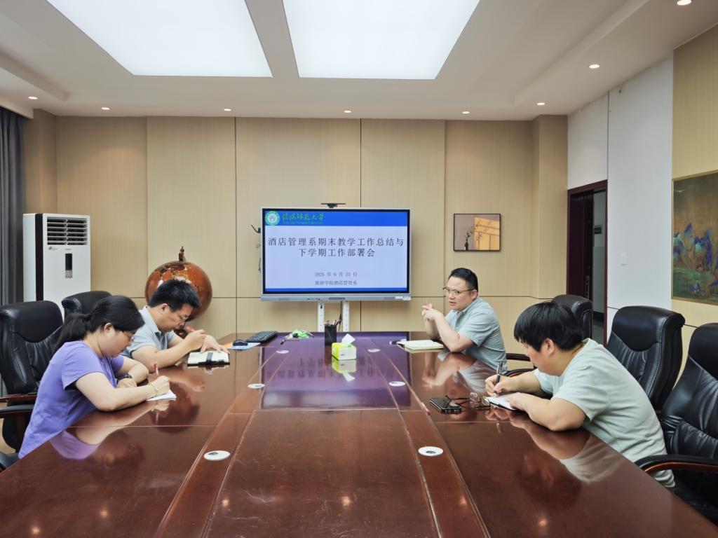 6月23日下午,酒店管理系全体教师期末总结工作会议在经管楼404会议室顺利召开,系主任李明伟主持会议。全体教师齐聚一堂,围绕酒店管理系期末流水阅卷、期末教学工作总结与下学期工作部署、教师组织深入贯彻中央八项规定精神学习教育共研共学活动三项议题展开深入交流与探讨,为学期工作画上圆满句号,也为新学期发展锚定方向。