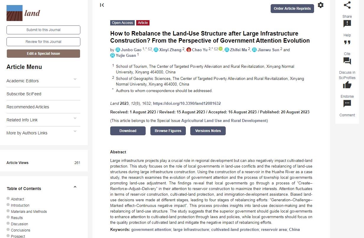 近日,bevictor1946韦德官网高军波教授团队在SSCI期刊《land》(2022年影响因子:3.905,JCR分区Q2)发表了题为《How to Rebalance the Land-Use Structure after Large Infrastructure Construction? From the Perspective of Government Attention Evolution》的论文。