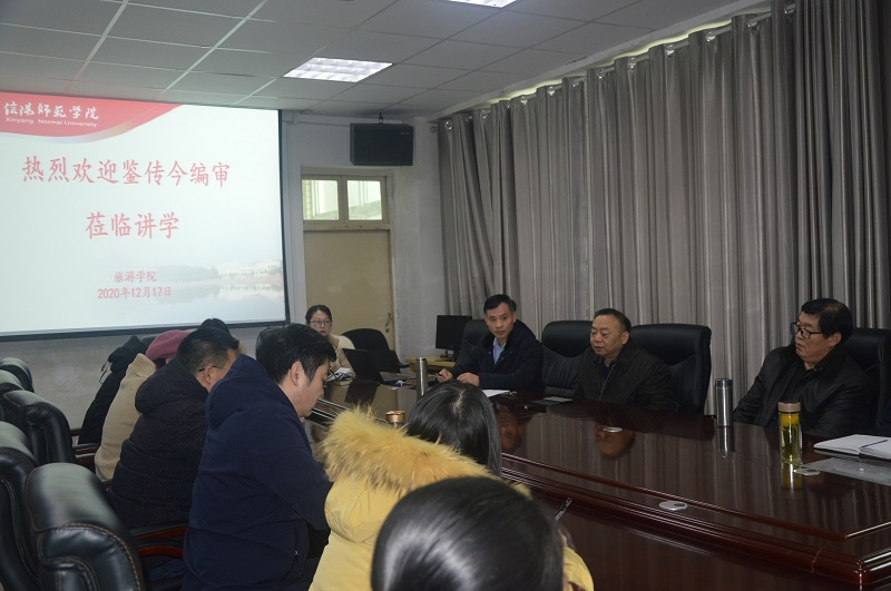 第一场报告会中,鉴编审首先从报告、综述、随笔及严格学术论文之间的差异谈起,着重讲述了严格学术论文写作中常出现的几个问题,归纳了学术史论文和现实性强论文常见写作方法及论文论证的一般过程,并讲解了科学文献的四大类型及史料征引的手法。第二场报告会中,鉴编审以大别山区红色文化资源开发为例,深入浅出地阐述了开发该区红色文化资源的路径,强调研究红色文化资源问题指向要明确、具体化,要避免问题的泛化等。