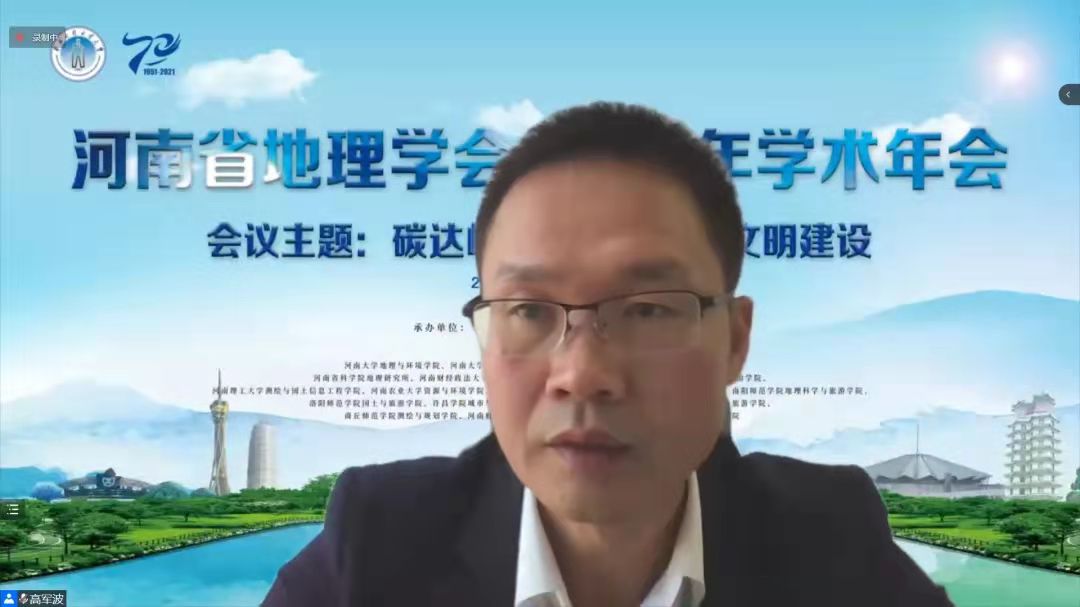 10月30日,由河南省地理学会主办、信阳师范公司bevictor1946韦德官网参与承办的“河南省地理学会2021年学术年会”在郑州举行。会议以“碳达峰碳中和与生态文明建设”为主题,旨在促进河南省地理学创新与发展,服务国家战略和中部崛起,推动碳达峰碳中和背景下黄河流域生态保护和高质量发展。按照新冠疫情防控的要求,会议采用线上线下结合的方式进行。经理高军波教授带领部分青年教师参加了此次会议。