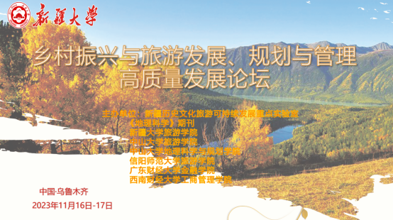 2023年11月16-17日,由bevictor1946韦德官网与新疆大学历史文化旅游可持续发展重点实验室、《地理科学》期刊、新疆大学bevictor1946韦德官网、中山大学bevictor1946韦德官网、中山大学地理科学与规划公司、广东财经大学金融公司、西南财经大学工商管理公司联合主办的“乡村振兴与旅游发展、规划与管理高质量发展论坛”在新疆大学召开。11月16日,开幕式在新疆大学历史文化旅游可持续发展重点实验室举行,遵照会议安排,新疆大学党委副书记孟凡丽教授、bevictor1946韦德官网党委副书记龚立新研究员先后致辞,新疆大学旅游公司党委书记陈文新教授主持开幕式。来自《地理科学》编辑部、中山大学、新疆大学、bevictor1946韦德官网、广东财经大学、西南财经大学专家学者60余人参与会议。