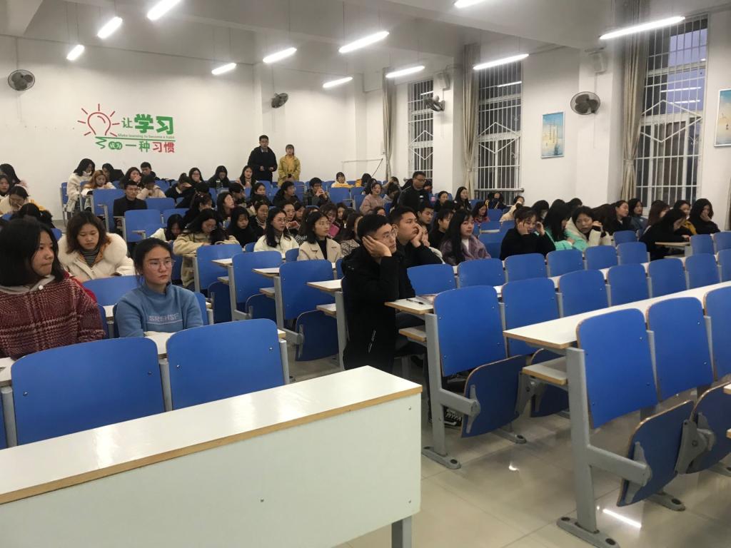 会上,李明伟首先就大学英语四六级会场安排、考试需要证件、考场秩序、考试流程等方面作了详细的说明,与此同时,赵阳阳告诉在场学子们期末考试即将到来,要抓紧时间复习,对期末考试的考试安排、考场秩序与其他相关工作进行具体说明。随后,他指出,大学英语四六级考试是一项全国性的大型考试,对在场学子们提出具体要求:一要抓紧时间复习,做到不负此行。二要端正考试态度,树立诚信意识。大会在掌声中落下帷幕。