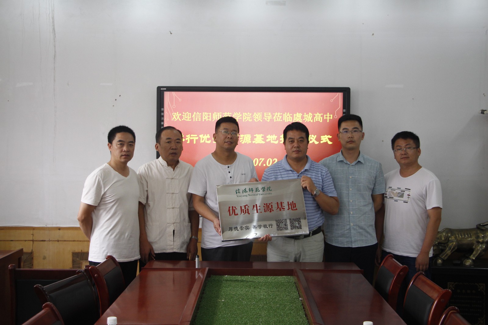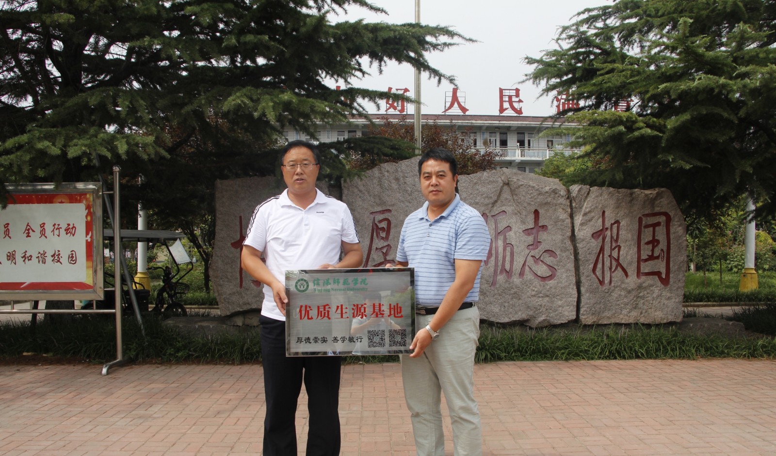 招生宣传工作队先后到访了永城市高级中学、永城市实验高级中学、夏邑县高级中学、虞城县高级中学等“河南省示范性普通高中”,与各高中董事长、教务主任、毕业班班主任等相关领导老师开展了座谈会,并且积极深入正在公司进行志愿填报的考生及家长中去,发放了《信阳师范公司2018招生指南》、《信阳师范公司2018年招生宣传手册》,张贴宣传材料《信阳师范公司2018年招生简章》,积极宣传推介公司以及今年公司的招生政策,希望各校领导老师在广大考生中多多宣传公司,鼓励考生积极填报公司志愿,也接受考生及家长咨询,回答他们关切的话题。此次招生宣传工作受到了该片区高中的校领导、班主任、考生及家长的欢迎,收到了良好的宣传效果。最后,招生宣传工作队在永城市实验高级中学、夏邑县高级中学、虞城县高级中学三所高中进行了“信阳师范公司生源基地协议书”签订以及“优质生源基地”挂牌工作。