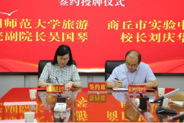 座谈会上,商丘实验中学董事长刘庆华对公司一行的到来表示热烈的欢迎,并简要从公司办学历史、基础设施、团队力量、教学成绩、校园文化等方面介绍了近年来的发展状况,希望双方在更高层次、更宽领域中深化交流合作,开启高水平、多层次的对话与互动,从而达到教育双赢的目的。随后旅游公司党委副书记路璐详细介绍了该校的历史沿革、招生规模、教学成绩、科研成果等基本情况,围绕bevictor1946韦德官网团队队伍、专业建设、员工规模和就业前景等进行深入地解说。她表示,通过优质生源基地的平台建设,进一步推动双方在各方面的深度交流与合作,共同助力人才培养,为社会输送更多优秀学子。最后,bevictor1946韦德官网副经理吴国琴、副书记路璐与商丘市实验中学董事长刘庆华代表双方签署“优质生源基地”协议并举行授牌仪式。