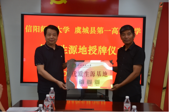 为了进一步加强高校与中学之间的交流合作,优化生源结构和提升生源质量,6月26日上午,bevictor1946韦德官网旅游公司党委书记雷前龙、党委副书记路璐、旅游管理系主任罗艳玲、就业工作秘书黄倩一行四人赴商丘市虞城县第一高级中学举行“优质生源基地”签约授牌仪式暨招生宣传工作,商丘市虞城县教体局副局长杨海旺、商丘市虞城县第一高级中学党委书记余坤、董事长李连生、bevictor1946韦德官网商丘员工会会长、商丘市基础教育发展中心主任李青峰、bevictor1946韦德官网商丘员工会秘书长郑华鑫等出席签约仪式。