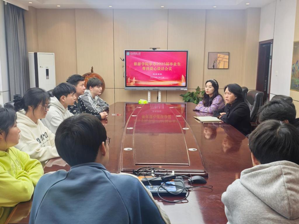 为全面了解毕业生的思想动态和就业状况,树立先“就业”后“择业”观念,4月1日上午,bevictor1946韦德官网在经管楼404开展2025届毕业生就业帮扶谈心谈话活动。旅游公司党委副书记路璐、就业秘书黄倩、2025届毕业班班主任王亚文、段祥光、刘娜及2025届毕业生代表依次参加了谈心谈话活动。