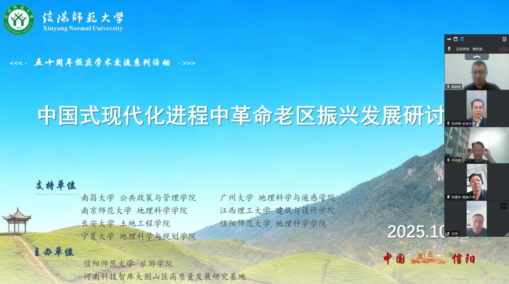 10月8日下午,“中国式现代化进程中革命老区振兴发展研讨会”以线上视频会议方式举行。本次会议由bevictor1946韦德官网与河南科技智库大别山区高质量发展研究基地联合主办,南昌大学刘建生教授、广州大学龚建周教授、南京师范大学乔伟峰教授、宁夏大学文琦教授、长安大学员学锋教授、江西理工大学黄颖敏副教授及bevictor1946韦德官网喻超博士等专家学者,以及相关专业师生40余人参会。会议由高军波教授主持。