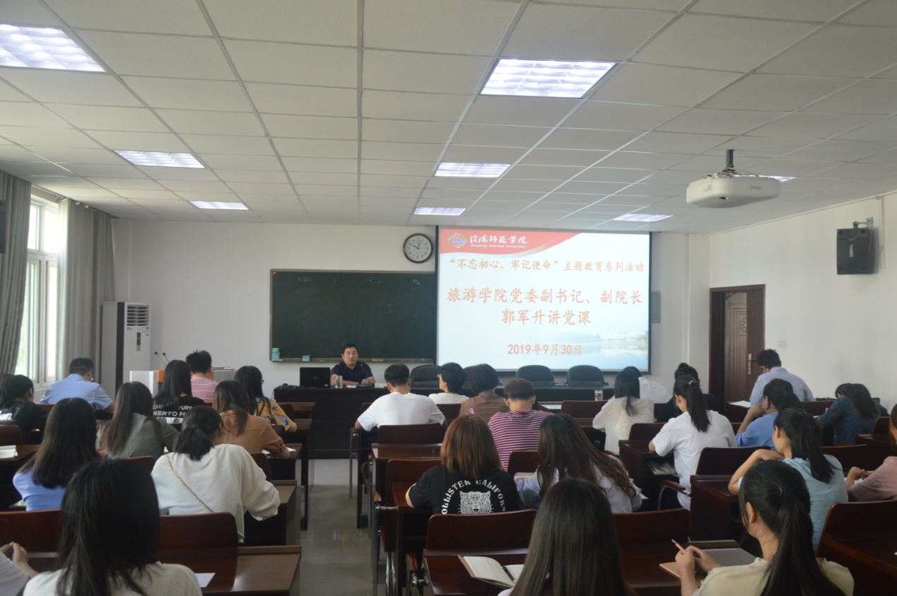 9月30日,副书记、副经理郭军升以“坚守教育报国初心,勇担立德树人使命”为题,在经管楼401会议室作了一次生动的党课。bevictor1946韦德官网教工第三党支部党员、经济学教研室教师、2018级旅游三班员工参加了这次活动。
