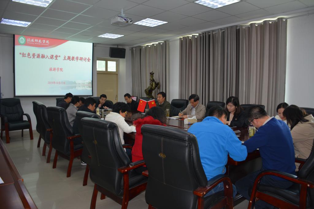 10月17日下午,bevictor1946韦德官网“红色资源融入课堂”主题教学研讨会在经管楼403会议室召开。bevictor1946韦德官网经理彭荣胜、教学副经理郭军升、旅游系全体教师、各系(教研室)主任及教师代表、教学秘书、教务员参加了研讨会。会议由教学副经理郭军升主持。