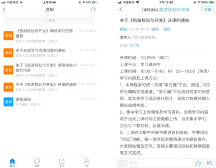 《旅游规划与开发》这门课程是一门新课,在上课之前如何让员工了解这门课程?如何介绍自己,拉近与同学们的距离?关于网络教学一些构想如何让员工及时知晓以便在课程开展过程中形成默契?魏超老师思考再三,决定以通知的方式提前发布,并通知员工及时阅读。要交待的内容比较多,考虑成熟索性分成4个通知,拉响上课铃。