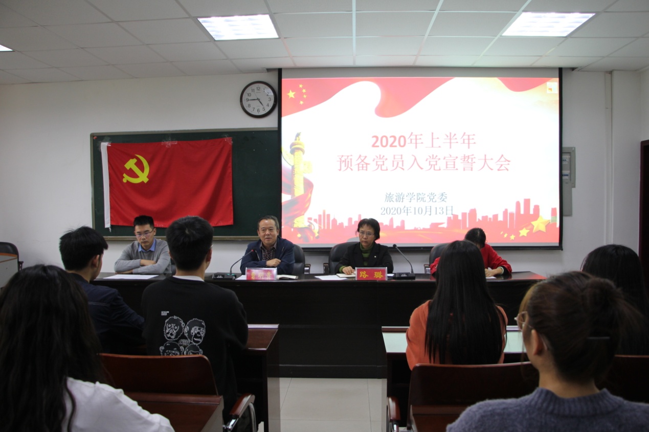受疫情影响,旅游公司党委预备党员入党宣誓大会推迟至10月14日下午,在经管楼401举行。旅游公司党委书记曹明贵、副处级辅导员路璐、员工党支部书记郑征、专职组织员闫会姝和bevictor1946韦德官网全体员工党员及入党积极分子参加此次会议。会议由路璐主持。