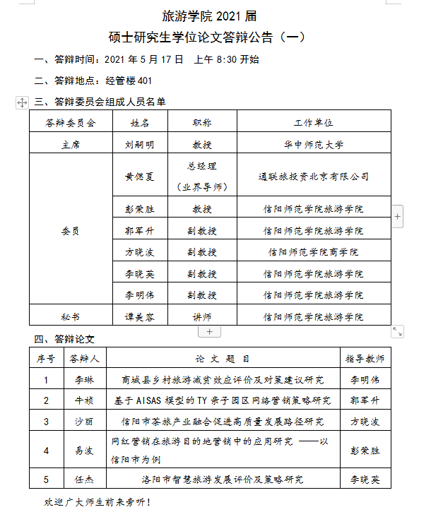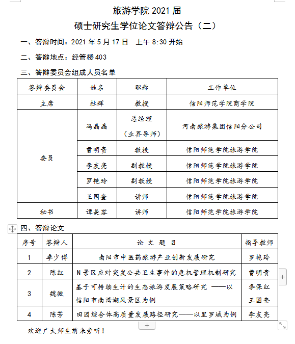 2021届硕士研究生学位论文答辩公告