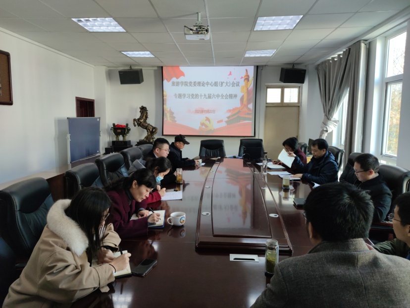 为学习贯彻习近平总书记在党的十九届六中全会上的报告。11月22日下午,旅游公司党委理论学习中心组成员、各党支部书记在经管楼404开展专题学习党的十九届六中全会精神扩大会议。