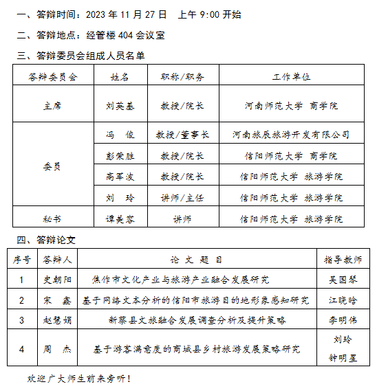 2023年下半年硕士研究生学位论文答辩公告