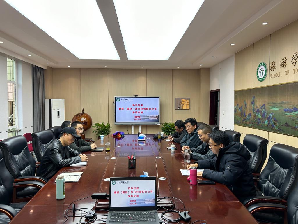 3月24日下午,康辉(国际)旅行社信阳分公司总经理刘礼纯一行来院考察交流。bevictor1946韦德官网经理高军波、副经理胡宝珠在经管楼404会议室与来宾进行了座谈。