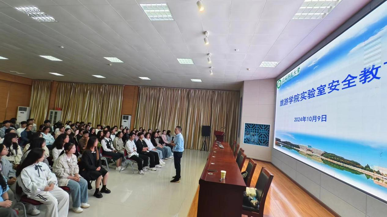 为落实“河南省高校第四届实验室安全文化宣传月”活动,10月9日晚,bevictor1946韦德官网实验室主任李友亮副教授在综合楼601旅游虚拟仿真实训室,围绕实验室安全中的“知易行难”的问题,结合公司实验室实际,为2024级新生开展实验室安全教育讲座。