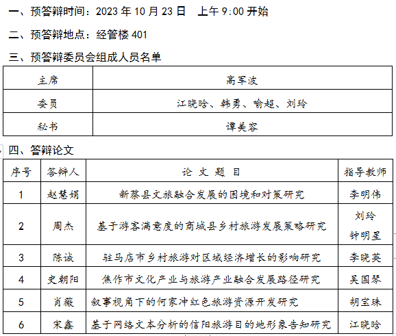 2023年硕士研究生学位论文预答辩公告