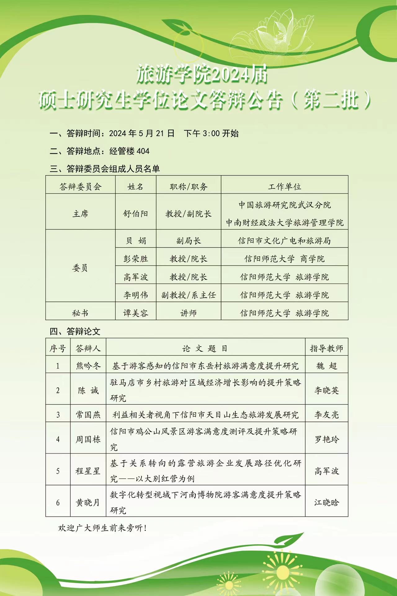 2024届硕士研究生学位论文答辩公告(第二批)